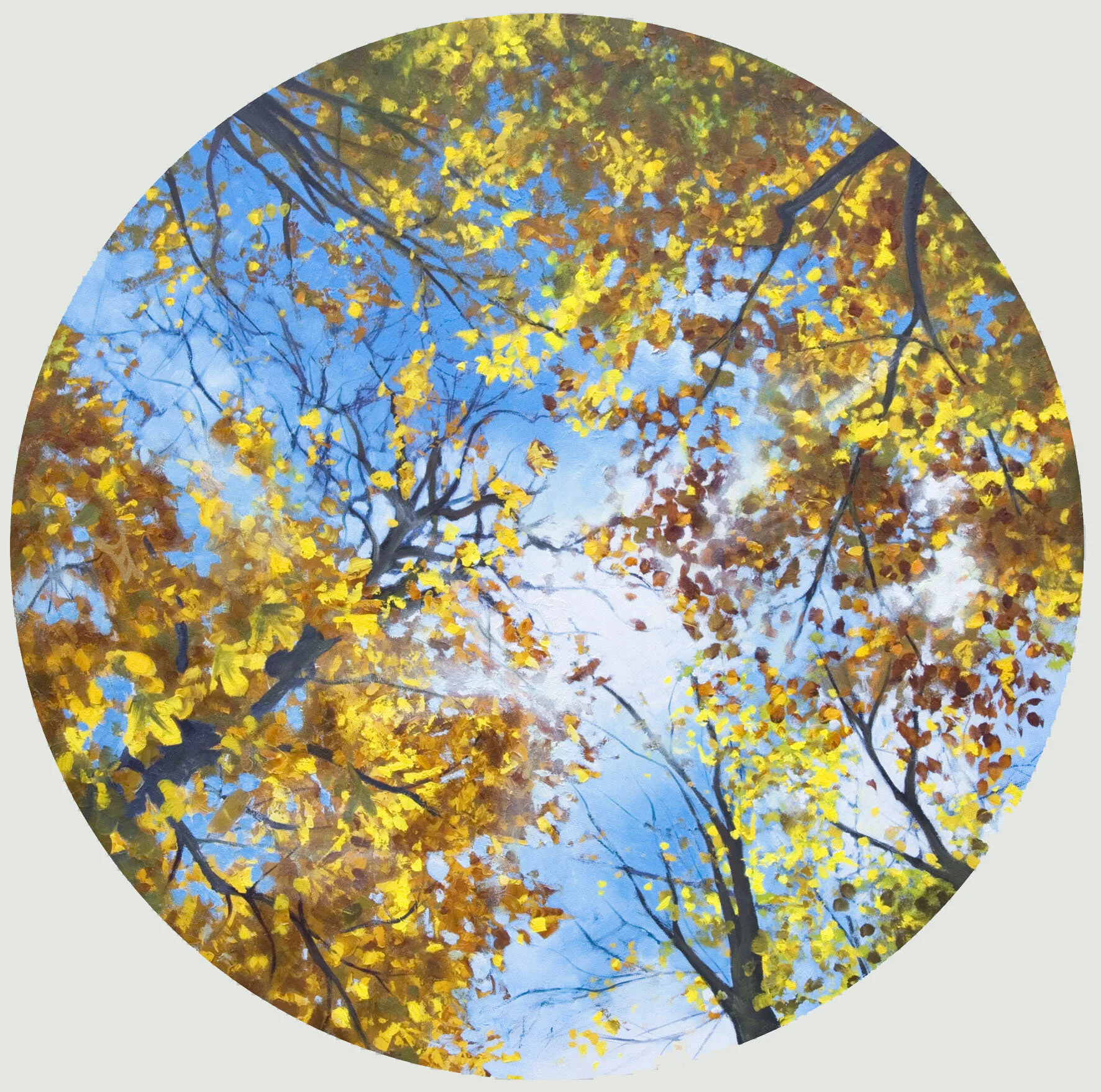 The viewer can rotate this painting a full 360° using the floating frame/handle giving an overall size of 70cm diameter. Comes with lightweight rotating bracket already installed on the painting, and only needs two small fixings/picture hooks at 10.5 inches apart on the wall to hang.