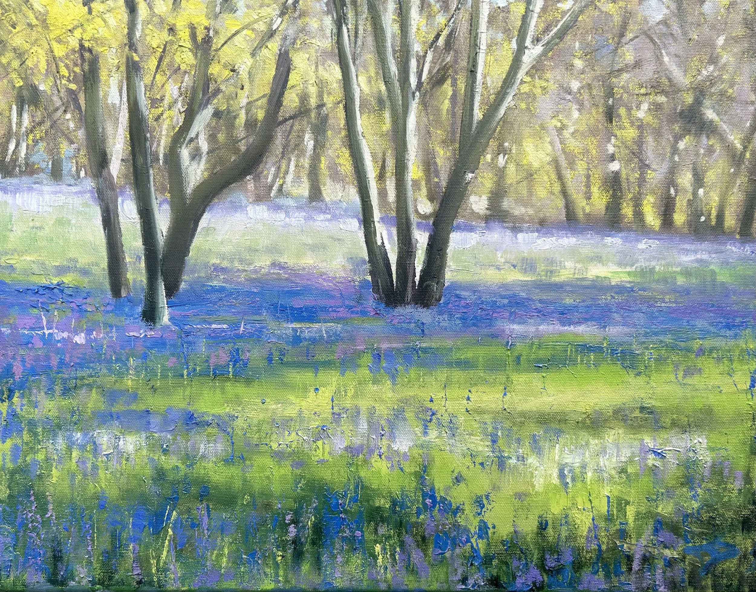 Vibrant bluebells carpet the floor in shades of violets & blues at Shrawley woods near Worcester.