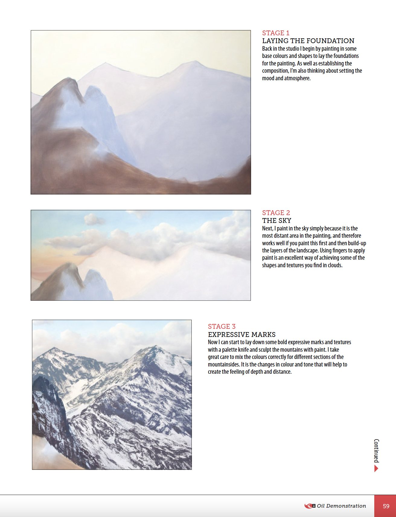 I was approached by the ‘International Artist Magazine’ to write an article about my high altitude mountain painting adventures, and how this relates to producing larger works back at home in my studio, including a step-by-step painting demonstration of this Painting. Below is the article for you to scroll through